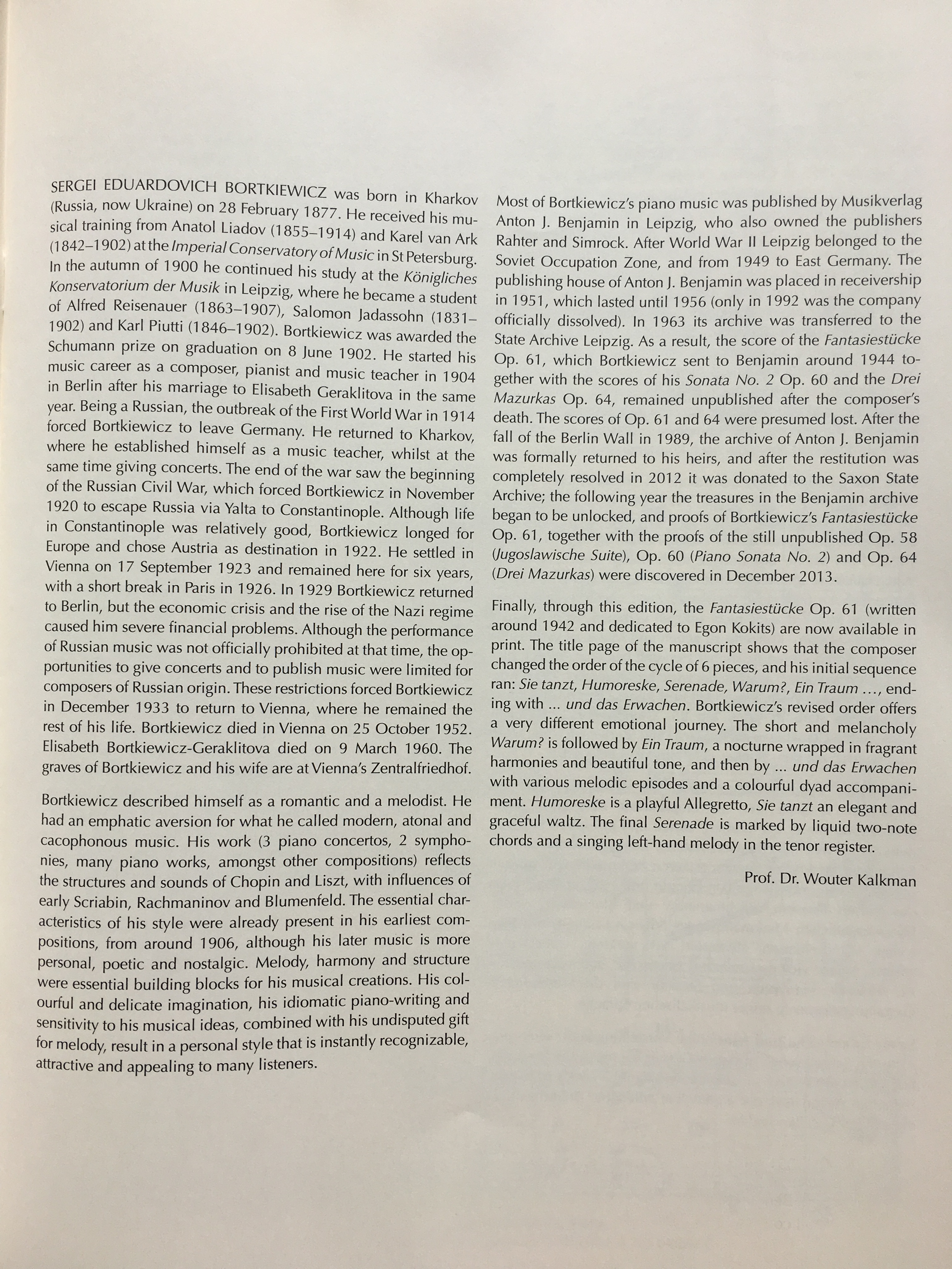 Sergei Bortkiewicz: his life and music